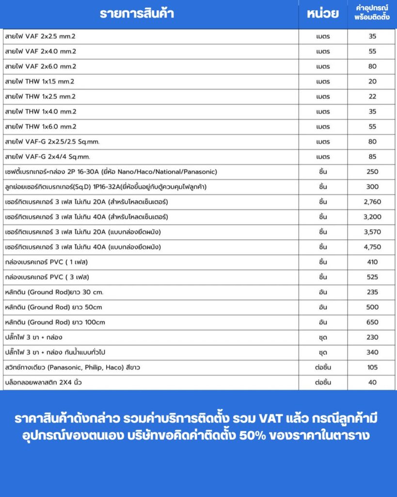 กรณีอุปกรณ์ส่วนเกินลูกค้าซื้อมาเอง คิดค่าแรง 50% ของราคาอุปกรณ์นั้นๆ