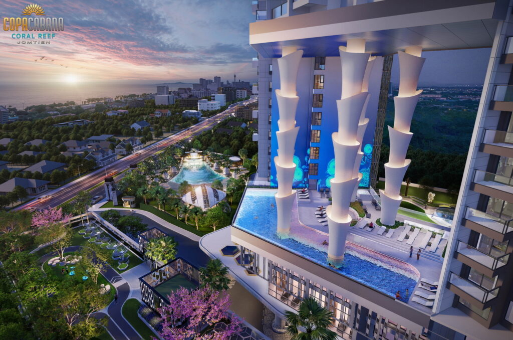 ด้วยความมุ่งมั่น ความซื่อสัตย์ และความจริงใจ เพื่อมอบประสบการณ์การอยู่อาศัยที่มีคุณภาพสูงสุดให้กับลูกค้า โคปาคาบาน่า กรุ๊ป ต่อยอดความสำเร็จเปิดโครงการแห่งที่สองในทำเลใกล้ๆ กับโครงการแรก ตอกย้ำอาณาจักรแบรนด์ โคปาคาบาน่า กรุ๊ป ในชื่อโครงการ โคปาคาบาน่า คอรัล รีฟ จอมเทียน (Copacabana Coral Reef Jomtien) เป็นคอนโดฯ High Rise Residential สไตล์โมเดิร์นตอบโจทย์ทุก Generation ในราคาเริ่มต้น 3.6 ล้านบาท* เฉลี่ยตารางเมตรที่ 90,000 บาท มาในคอนเซ็ปต์ “อัญมณีแห่งท้องทะเล (The Jewels of The Sea)” เพียบพร้อมด้วยสิ่งอำนวยความสะดวกที่ครบครัน และทันสมัย ส่วนกลางสุดอลังการ และการบริการระดับโรงแรม 5 ดาว บนเนื้อที่กว่า 13 ไร่ครึ่ง ทำเลที่ตั้งสุดพิเศษ! ใกล้หาดจอมเทียนเพียงแค่ 4 นาทีเป็นอาคารสูง 55 ชั้น มีห้องชุดพักอาศัยจำนวน 1,897 ยูนิต จอดรถ 5 ชั้น และอาคารจอดรถเสริม 2 ชั้น มูลค่าโครงการกว่า 11,000 ล้านบาท เปิดตัวเมื่อเดือนตุลาคม 2567 เปิดขายเพียง 8 เดือน มียอดขายกว่า 700 ยูนิต ลูกค้าต่างชาติเริ่มกลับมามากขึ้นเห็นได้จากยอดขาย 2 ใน 3 ของยูนิตที่ขายได้เป็นชาวไทย 15% ชาวต่างชาติ 25% เป็นลูกค้าจากยุโรป รัสเซีย อเมริกา และแคนาดา เป็นต้น ส่วนที่เหลือเจาะตลาดลูกค้าคนไทย คาดว่าจะขายได้หมดก่อนที่จะก่อสร้างเสร็จ